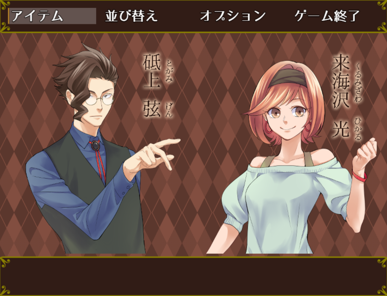 [PR] ×[PR]上記の広告は3ヶ月以上新規記事投稿のないブログに表示されています。新しい記事を書く事で広告が消えます。 開発中画像の差し替えをしました サイトトップに載せていた、開発中スクリーンショットの差し替えを行いました。 その中でも特に、大きな変更となりましたのは、メニュー画面だと思います。 以下、リメイクしたメニュー画面について。 こちらは開発中にお世話になった、仮のメニュー画面です。 絵柄、全体の雰囲気共にすべて、ゲームの世界観に沿うようにリメイクいたしました。 全体的にすっきりしたので、キャラクターが強調されて見えるようになったと思います。 作画作業はまだまだこれからですが、がんばりたいと思います。 PR コメント コメントを書く コメントを書く コメント送信